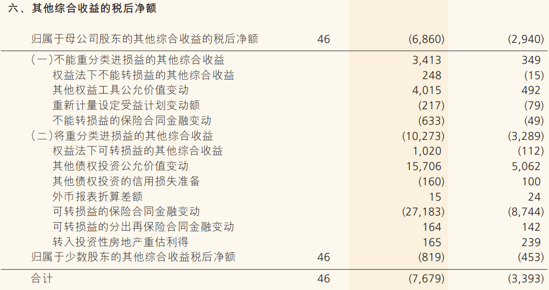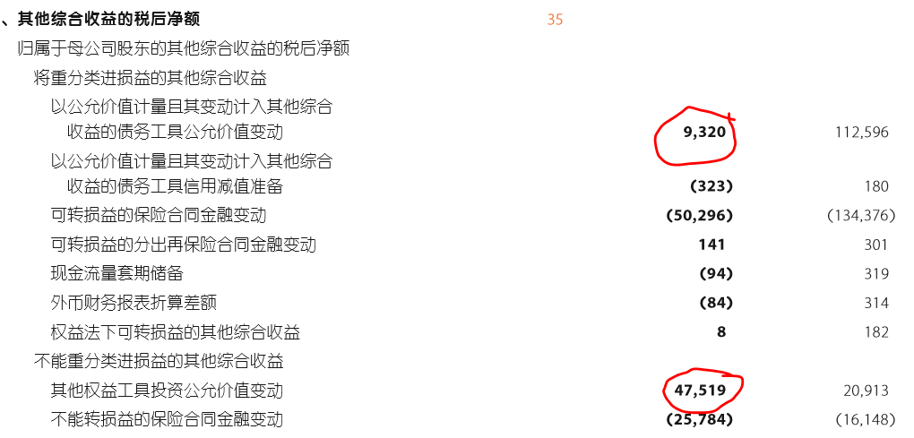 可转/不可转损益的保险合同金融变动这组数据因为新的会计准则,是从2023年年报才开始有的,我比较了有限的2年的不同保险公司的这个明细,其实趋势基本一致。