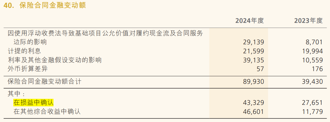 大家都知道保险2个假设调整,投资回报率假设的下调,对利润表的影响,就会从这里体现。如果比较2024年2023年2022年的报表,可以看到这一部分,发生了巨大的变动,就是因为连续两年假设的变动。同时市场的基准利率的变动也会影响这一部分。
