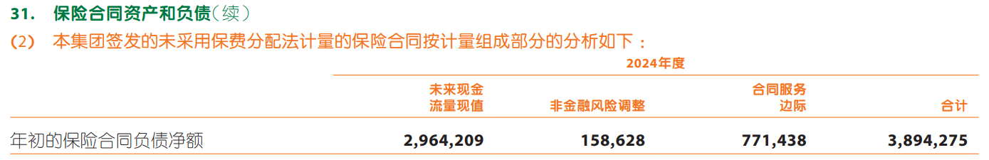 通过这张表我们可以清晰地看到保险合同负债与合同服务边际CSM的关系,那就是: