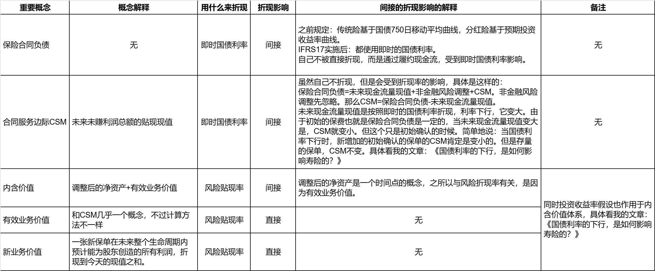 原因就是他们用的折现率不一样。CSM是受到即时国债利率影响,而直接作用于有效业务价值则是用风险贴现率。而风险贴现率比国债利率大很多。