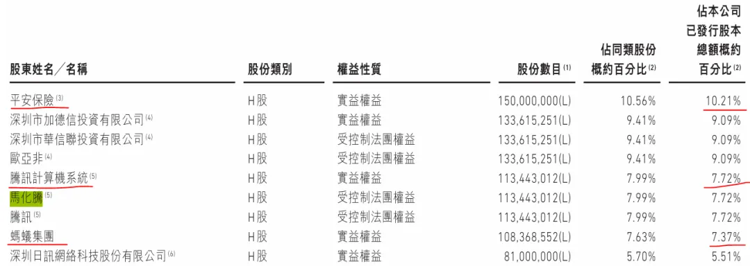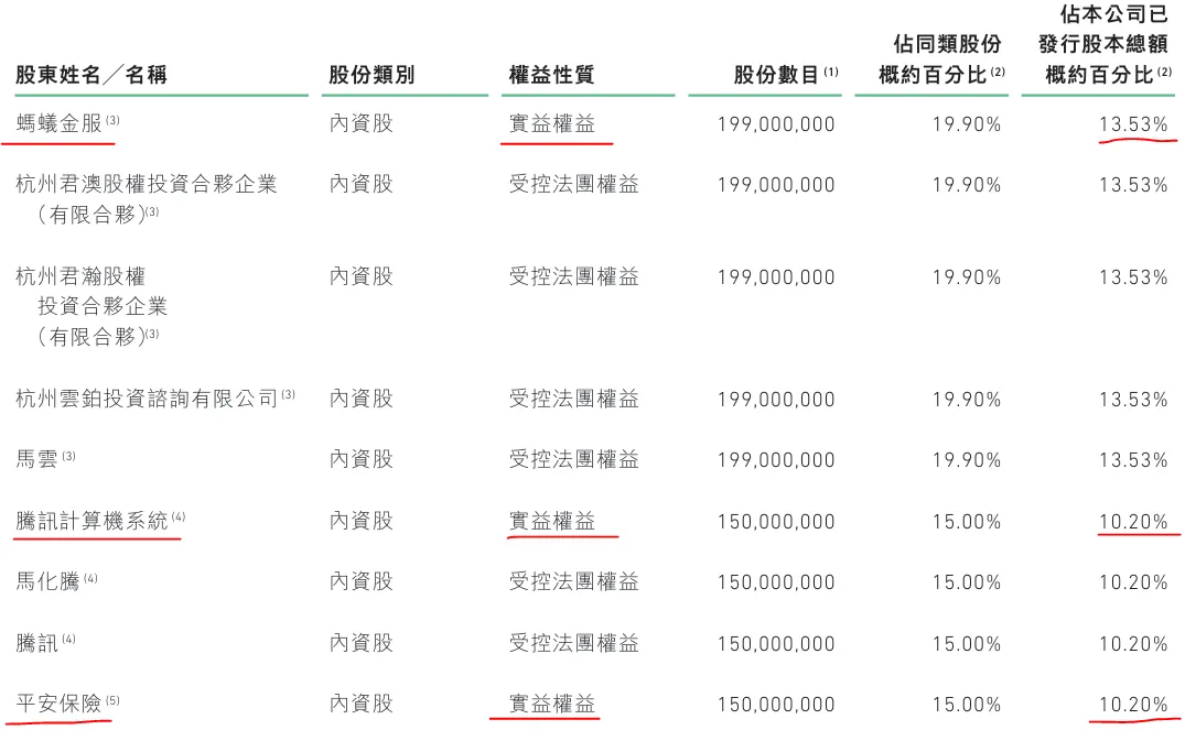 可以看到,蚂蚁的股份已经从13.53%降低到7.37%,腾讯计算机系统也从10.2%降低到了7.72%。
