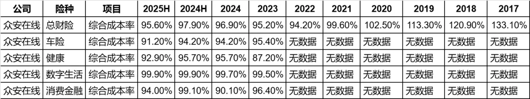 3. 也有一些隐忧:它最有别于竞争对手的数字生活板块,几乎是不赚钱的,每年都是接近100%的综合成本率。