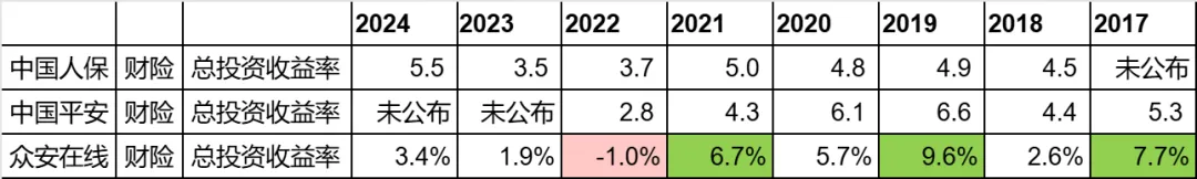 我列举了可以查到财险单独投资收益率的公司,如下图: