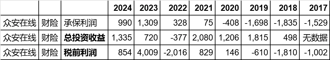 上图中我把财险公司的两大利润来源:承保利润+投资收益,与税前利润放一起看。