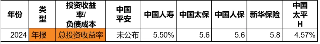 分红险的预定利率是1.75%,假设保险公司的投资收益率是5%。我为什么假设是5%,我是参考了下图中的5家保险公司的数据,在2024年大家几乎都达到了5%的收益率,而今年资本市场仍然在继续好转。