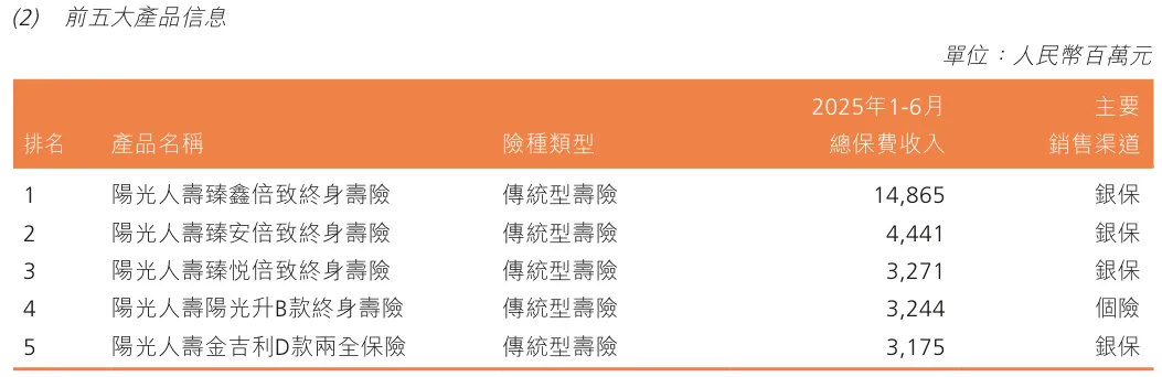 以阳光保险为例,这是2025年中报他们公布的前5大产品: