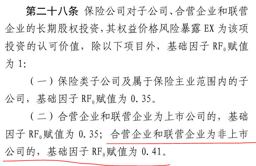 而《保险公司偿付能力监管规则》第8号文件,是有规定合营企业的风险因子的: