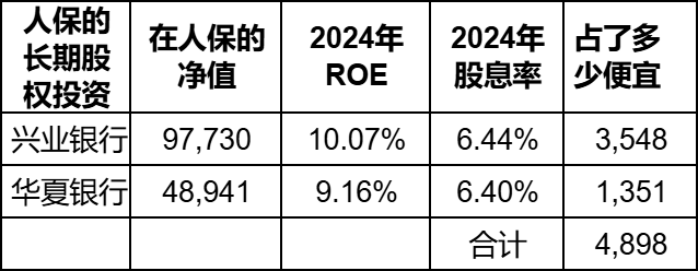 兴业和华夏银行的净资产增速,决定了人保持有它们这一笔投资的净值增速,并且计入资产负债表资产端的长期股权投资。