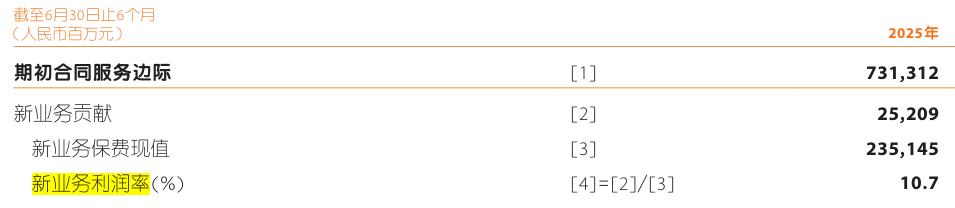 整个保险业,只有中国平安公布了利润率。如下图,是2025年中报,平安公布的新业务的利润率,是10.7%。