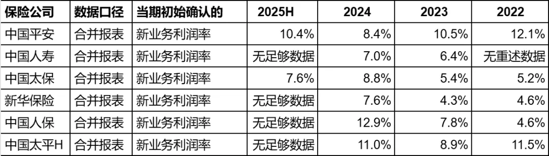 这个结果和平安2025年中报直接公布的10.7%有一些出入,其中至少有一个原因是,我们只能计算“未采用保险分配法计量的保险合同”的新业务的利润率,这一部分是平安的大头,而采用保险分配法的不能计算。