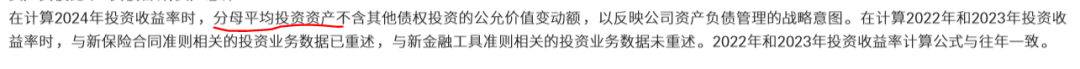 至于平安、国寿和太保的公式里有没有考虑卖出回购利息支出等因素,2024年财报没有明说,只有太保提了一句“净投资收益率考虑了卖出回购利息支出的影响”。