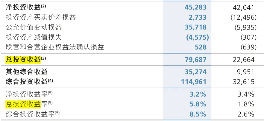 保险公司财报中通常会提供3大投资收益率:净投资收益率、总投资收益率和综合投资收益率。