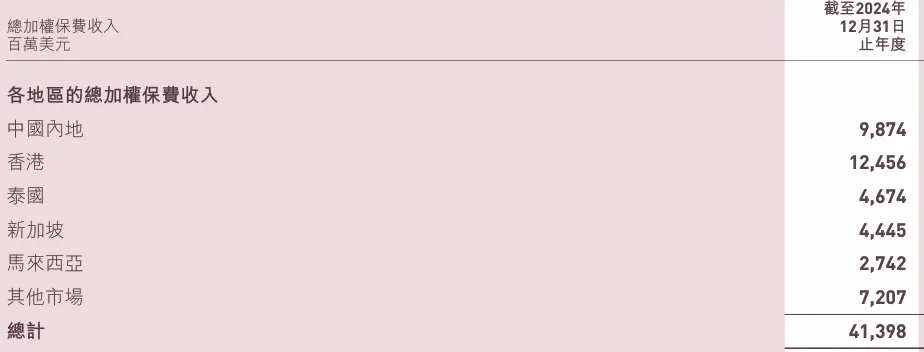 从上图可以看到,大陆的业务只占了整个友邦不到1/4。