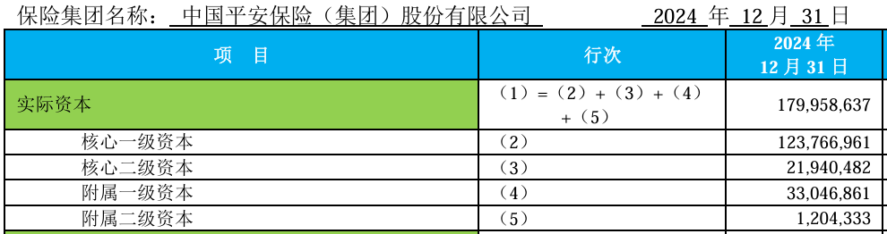 偿付能力充足率是用实际资本/最低资本计算的,而实际资本中,净资产占了大头,比如下图的平安,可以看到平安的实际资本1.79万亿,其中1.3万亿都是净资产: