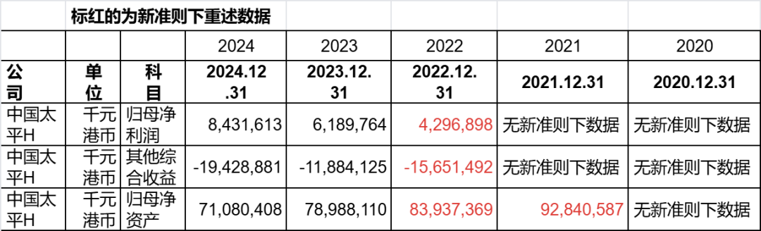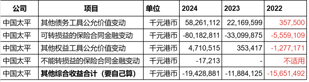 可以看到,对其他公司来说,大部分年份,净利润正值都是大于其他综合收益的负值的,所以没有出现太平这样的净资产连续下降。