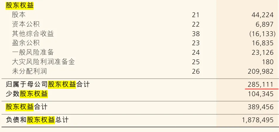 由于中国财险不公布三季报,所以我们用2025年中报的数据。如下图,人保集团的净资产是2851亿人民币,用0.9的汇率换算,是3168亿港币。