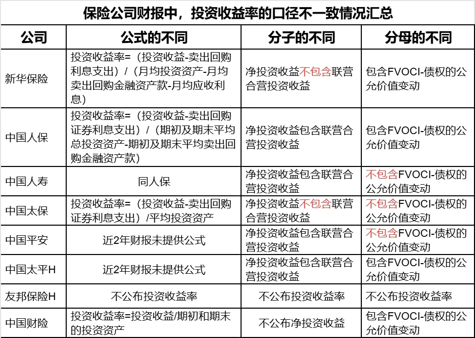 而新华保险则复杂一些:投资收益率=(投资收益-卖出回购利息支出)/(月均投资资产-月均卖出回购金融资产款-月均应收利息)。