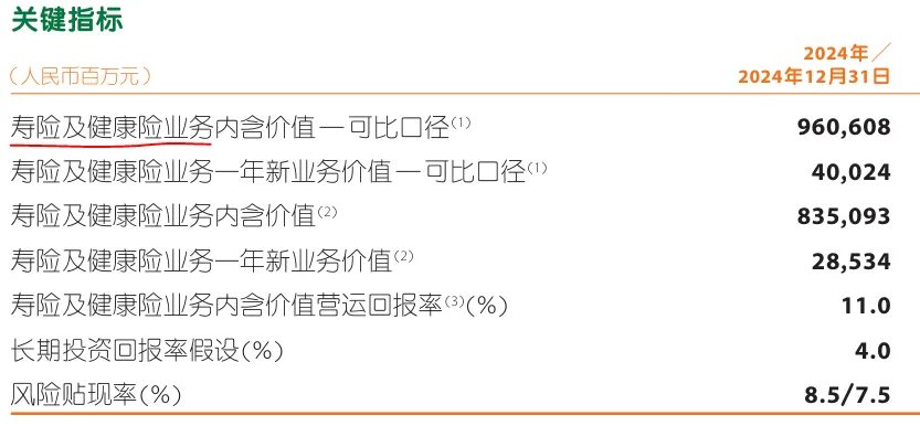 再说下中国平安,平安的财报数据非常清楚,公布的内含价值和新业务价值都注明了是“寿险及健康险”的。