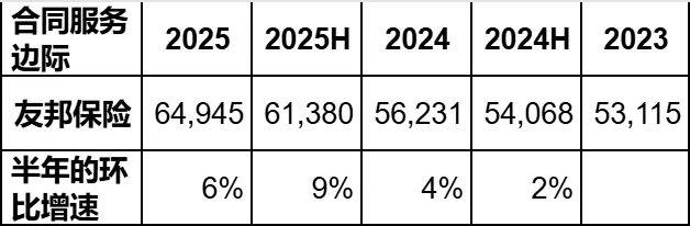 虽然2025年投资业绩表现不佳,但是需要提醒的是,友邦是一家真正意义上以承保主业为主的公司,2025年它的保险服务业绩是70亿美元左右的体量,而投资业绩才不到20亿。这和其他一些保险公司是完全相反的,一些公司投资赚回的利润远远大于了保险主业。