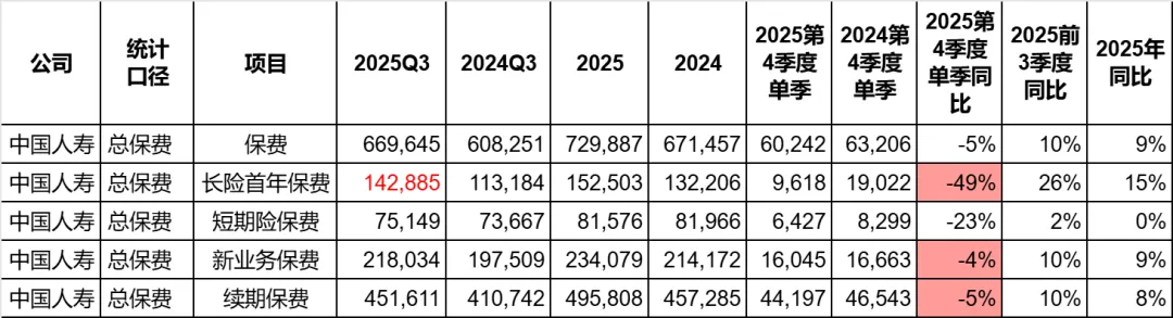2. 2025年Q3财报,国寿对长险首年保费只字未提,前一年可是提了的。所以,我在统计数据时,是用 Q3财报的新单保费减去短期险保费来自己计算长险首年保费的。