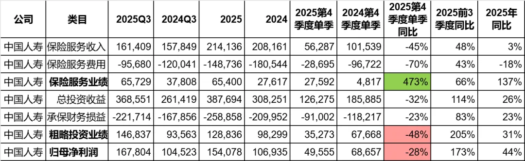 我之前写过一篇文章,写了各个公司投资的占比,国寿是最高的,也就是说国寿近年的业绩,过多地依靠投资。比如2024年的四季度单季,保险服务业绩才48个亿,而投资业绩就有670多个亿,所以即便四季度保险服务业绩大涨(只是靠费用的大幅度下降),也完全无法弥补投资端的下跌。