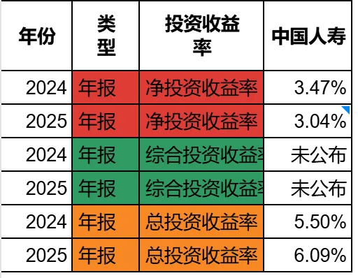 这里有个数据要说明一下,2025年报国寿没有公布净投资收益率,3.04%是我自己算的。当我看到突然不公布的时候,我就知道,估计数据这次不好了。从3.47%到3.04%,下滑幅度算是比较大的了,隔壁的平安只是从3.8%降到了3.7%而已。