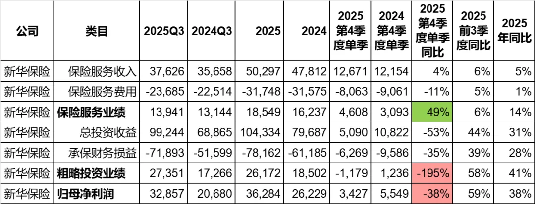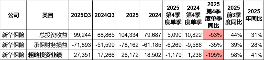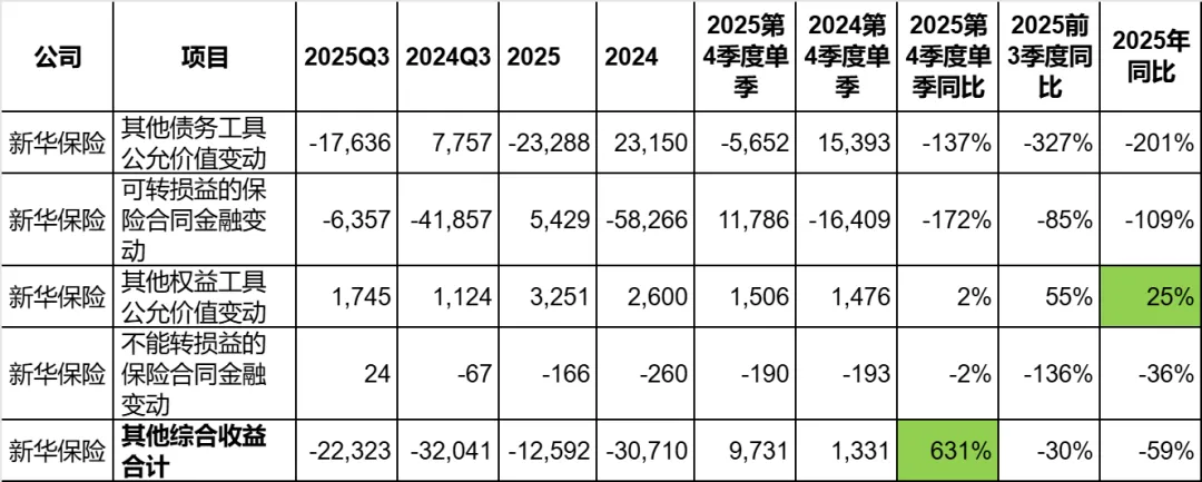 值得一提的是,整个2025年其实新华的其他权益工具的投资结果不错,全年上升了25%,其实是好于一些老牌的大公司的。