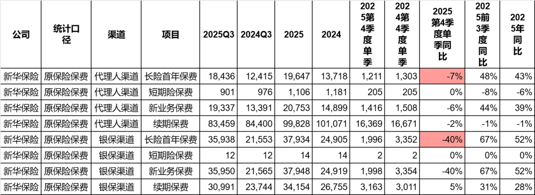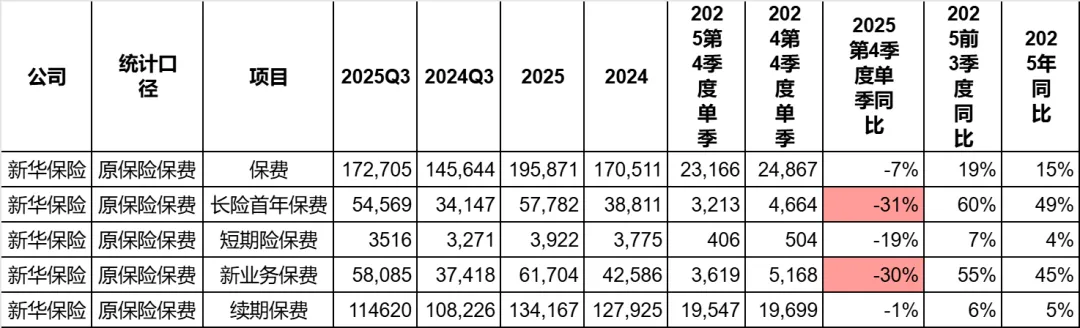 四季度单季的保费数据,如果抛开数据存疑的国寿,那么新华保险是下跌最大的上市保险公司。