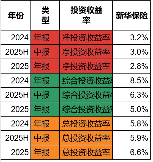新华2025年的总投资收益率6.6%,很不错。而综合投资收益率由于口径太不一致,还是要等我后续专门写文章拉平口径之后来比较。