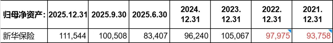 2025年底的净资产,新华涨到了1115亿,环比三季报和2024年报都是上升的。