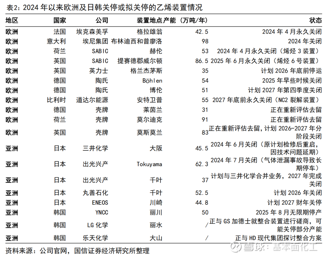 石脑油路线成本劣势,欧洲及日韩产能待优化