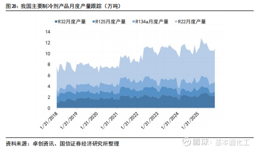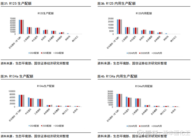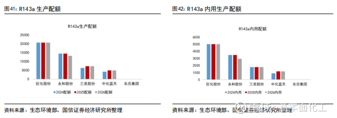 4.3HFCs:R32、R125、R134a较2025年初配额有所增加,R143a、R152a、R227ea有所减少,两次年内配额调整比例合计上调至30%,供给在配额约束下更具灵活性
