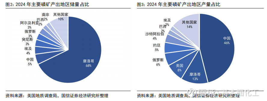 中国以全球5%储量支撑近半产量,资源保障压力突出,稀缺属性持续强化。中国磷矿石以全球约5%的储量贡献了全球45.8%的产量,储采比仅为33.6,远低于摩洛哥的1667,资源透支严重。据美国地质调查局数据,2024年全球磷矿储量740亿吨,其中摩洛哥占67.6%(500亿吨),但其因基础化工产业薄弱,产量仅占全球12.5%;而中国储量仅37亿吨,却年产超1.1亿吨,且整体品位仅17%,可采储量平均品位亦不足23%,显著低于全球30%的平均水平。在新能源需求大增与国内供给增长受限的双重作用下,磷矿石稀缺性不断强化,预计价格中枢将长期维持高位。
