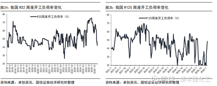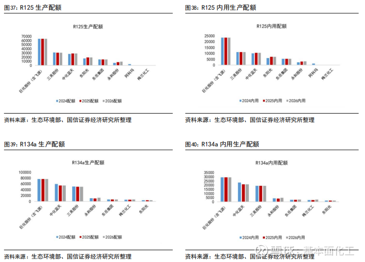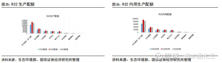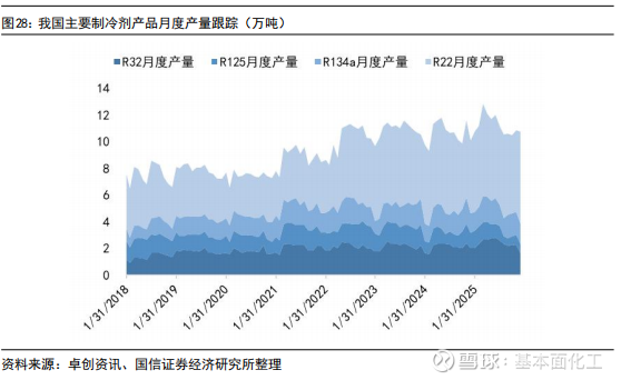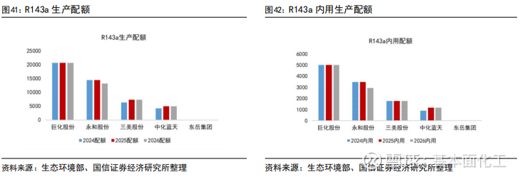 4.3HFCs:R32、R125、R134a较2025年初配额有所增加,R143a、R152a、R227ea有所减少,两次年内配额调整比例合计上调至30%,供给在配额约束下更具灵活性