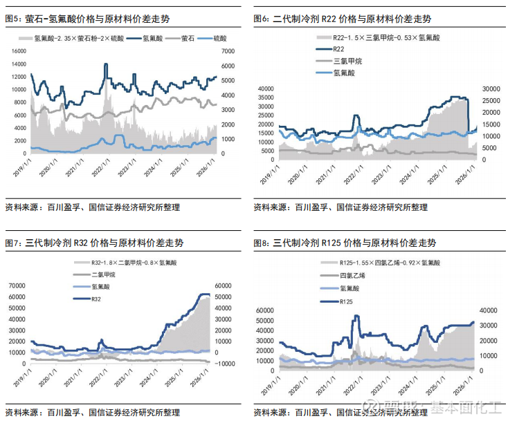 2.1 制冷剂价格与原材料价差表现
