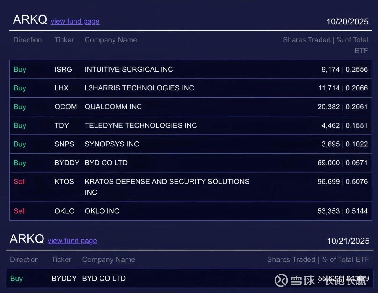 除了上述国际投行外,具有女版巴菲特之称的“木头姐”(凯茜·伍德),其旗下方舟投资为代表的长线资金也在加速布局比亚迪。10月20日,方舟投资通过旗下ARKQ基金买入69000股比亚迪,10月21日再度增持55523股,这一连串的动作,充分表明了该资本对比亚迪前景的看好。