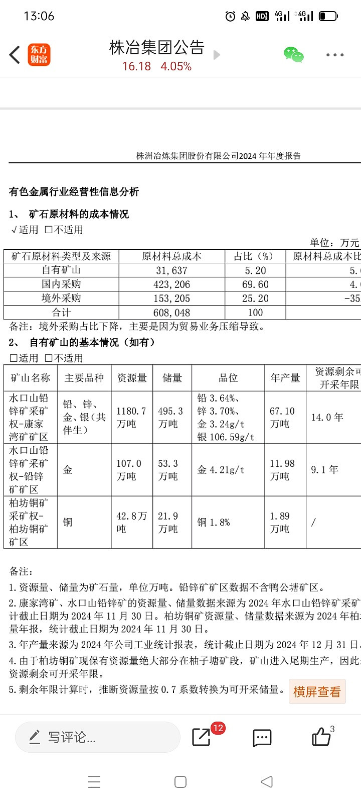 $兴业银锡(SZ000426)$ $紫金矿业(SH601899)$ $lymy$洛阳钼业(SH603993)$ 。一提到株冶集团,了解一点的人或许会说它是冶炼股,而且是铅锌冶炼股,没有多少投资价值。事实果真如此吗?目前的株冶集团已在2022年底完成资产重组,收购了水口山有色金属有限责任公司,从而拥有了水口山铅锌矿采矿权和柏坊铜矿采矿权,成为一家集资源、冶炼、加工于一体的铅锌龙头企业...株冶很多矿山是披着铅锌外衣的金矿,只不过一直很低调,一来是为了转采(铅锌地方,贵金属GUO家审批),二来是shui收,三来为了重组。