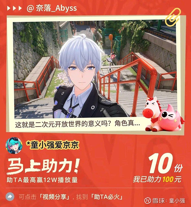 这些都是些日常,直到昨天我们看见一眼爆款的视频【这就是二次元开放世界的意义吗?角色真的好像和我生活在一个世界|异环同居系统实机演示|告别“单机”二游-哔哩哔哩】 网页链接,群友们自发给该视频买了推流,当时视频才几千播放量,现在已经20多万播放量。