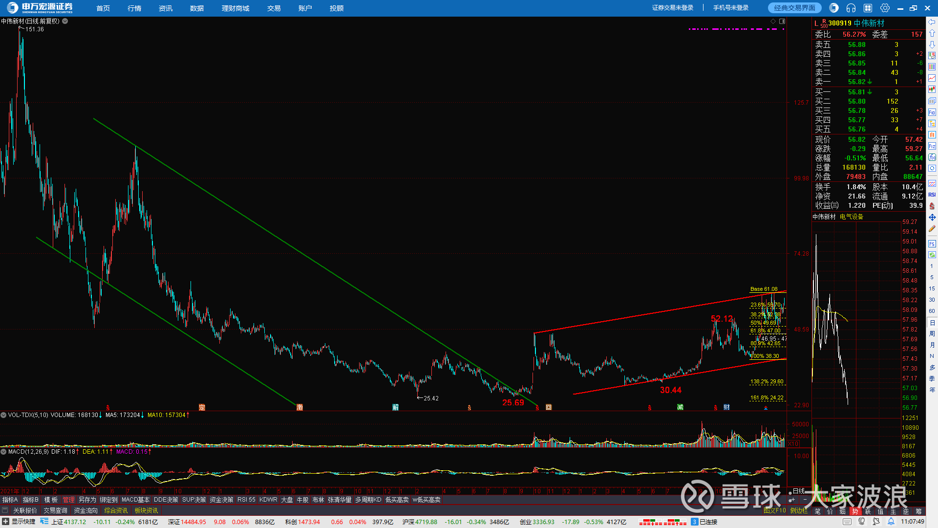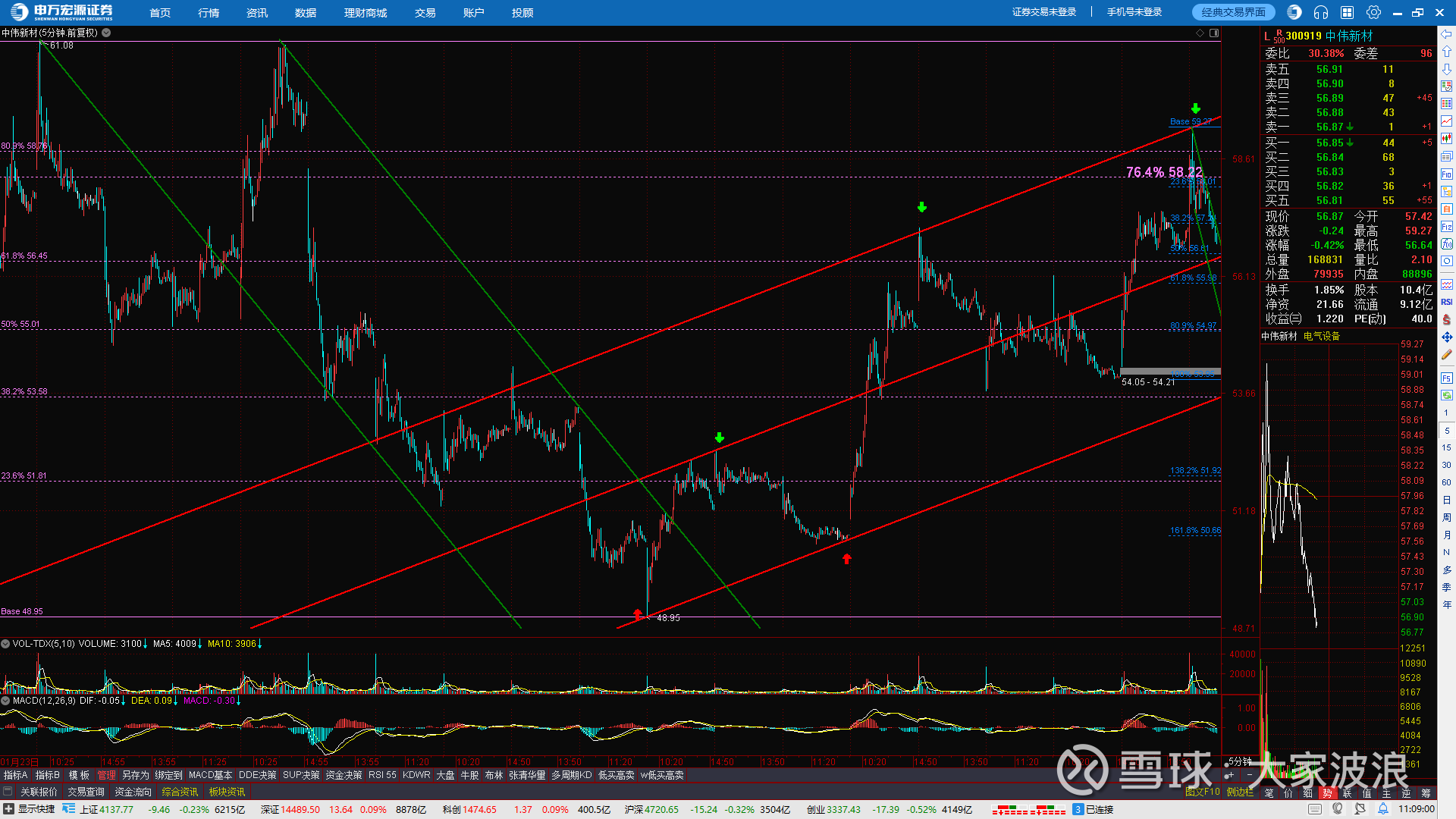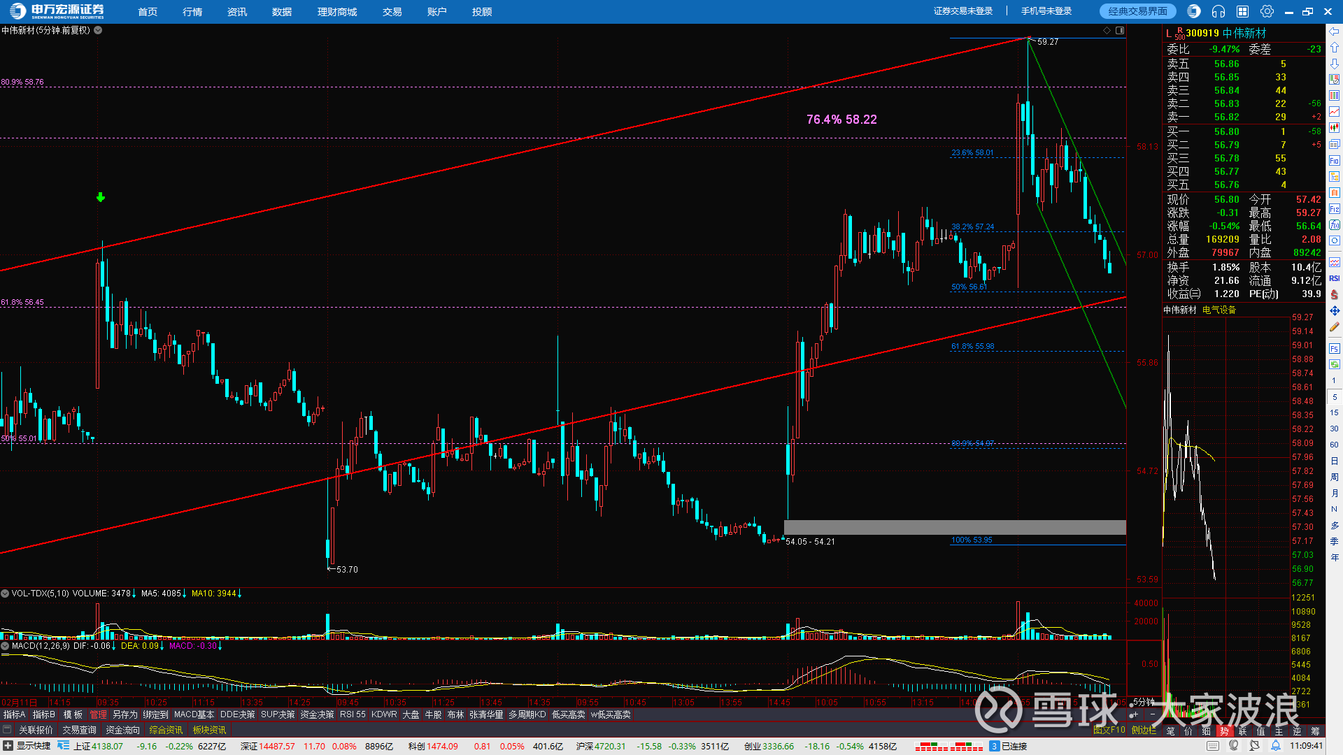 当前趋势,看价格通道;下一目标,看黄金分割线或价格通道线。