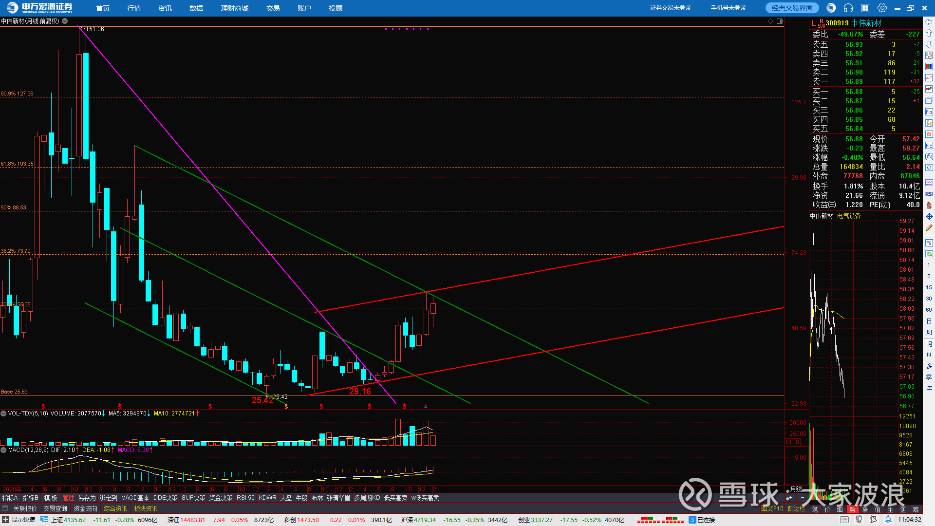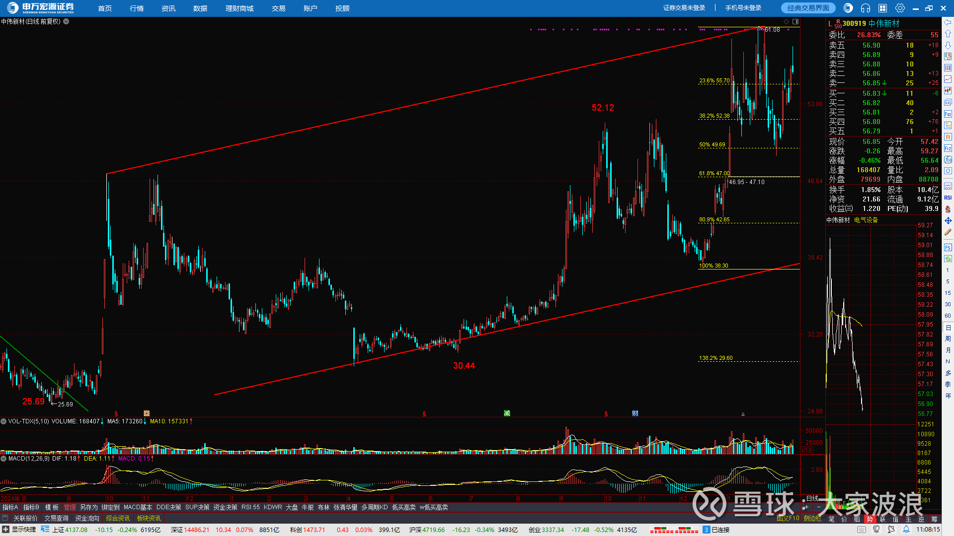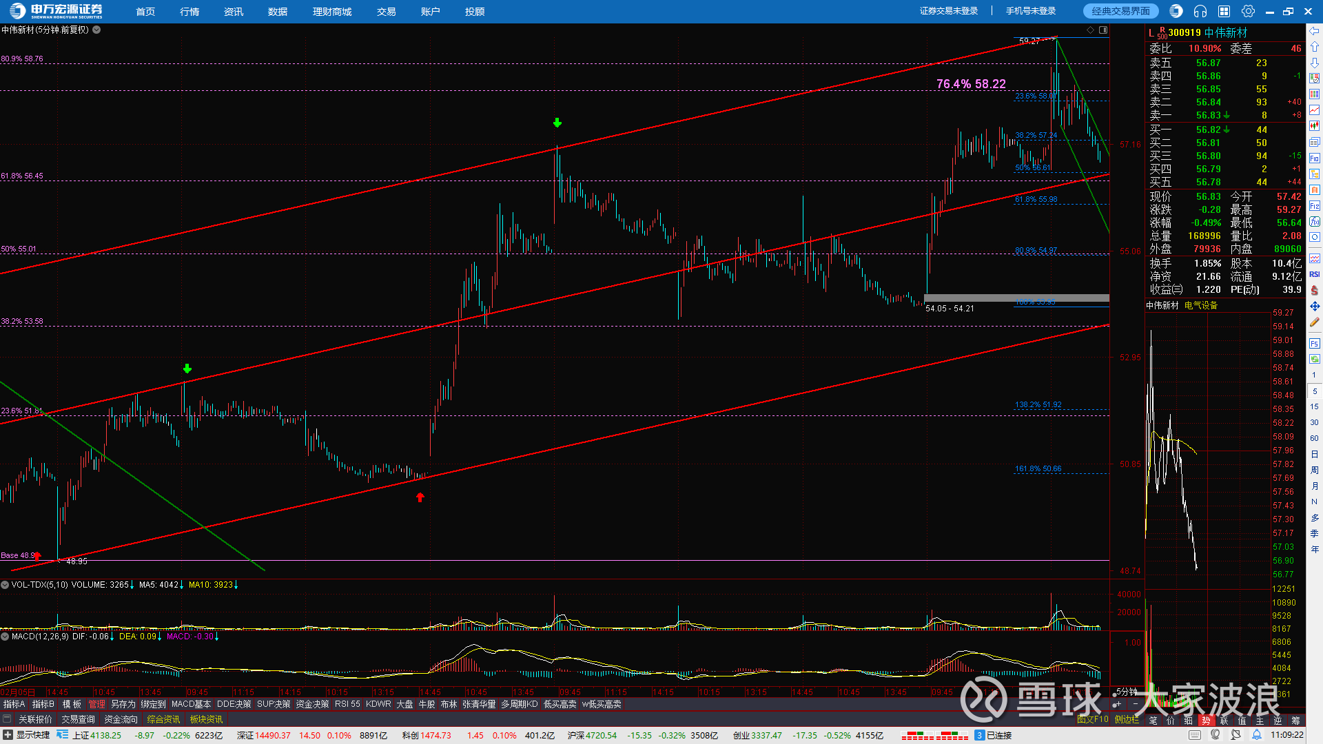 当前趋势,看价格通道;下一目标,看黄金分割线或价格通道线。