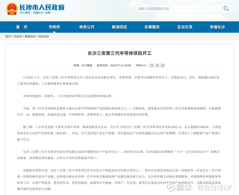 2019年10月,时任长沙市委书记胡衡华主导成立长沙三安半导体产业园项目协调小组,为项目落地提供专项保障。