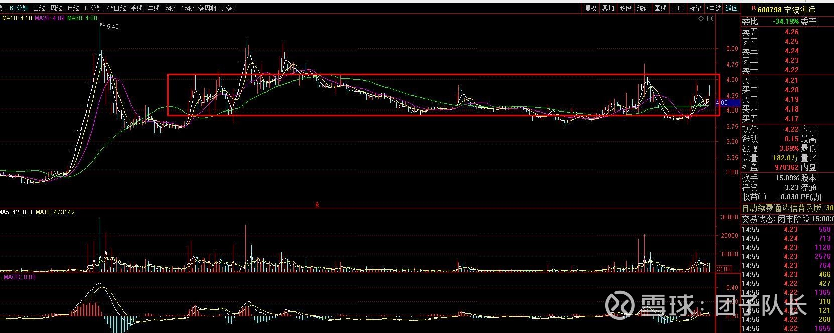 在60分K线可以看到该上涨中枢的区间,大致在3.93-4.56,这个区间就是比较理想的参与机会。