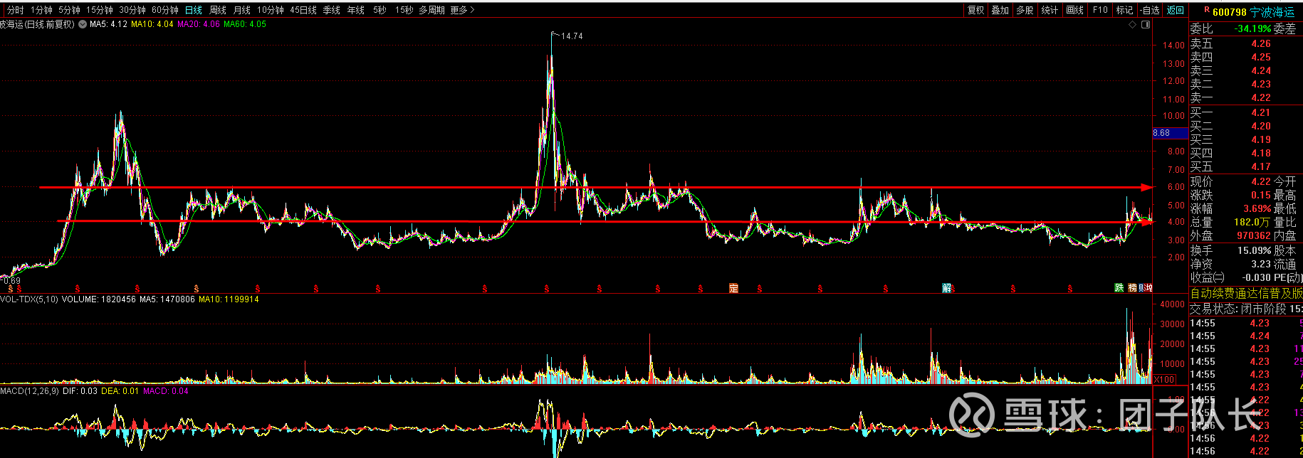 日线上看,$宁波海运(SH600798)$ 已经可以确认进入到了一个新的上涨段,目前在左侧临近下跌中枢上沿做了一个上涨中枢,并呈现出较活跃的交易信号并堆量。