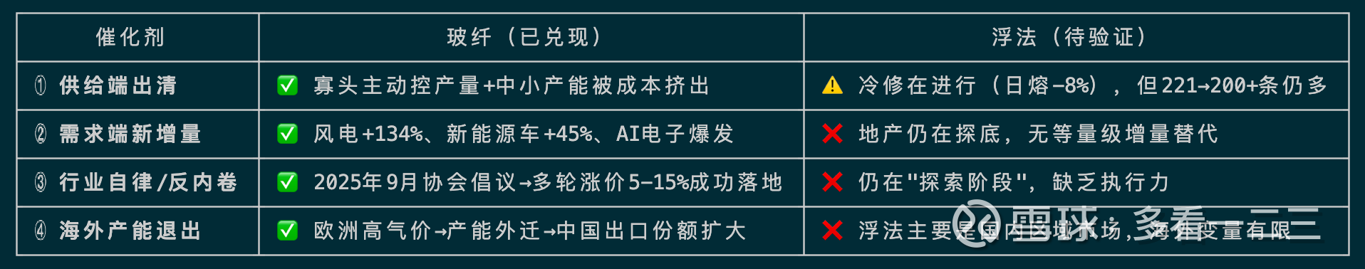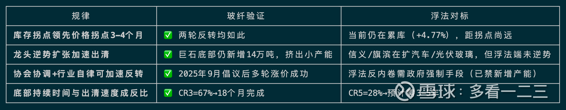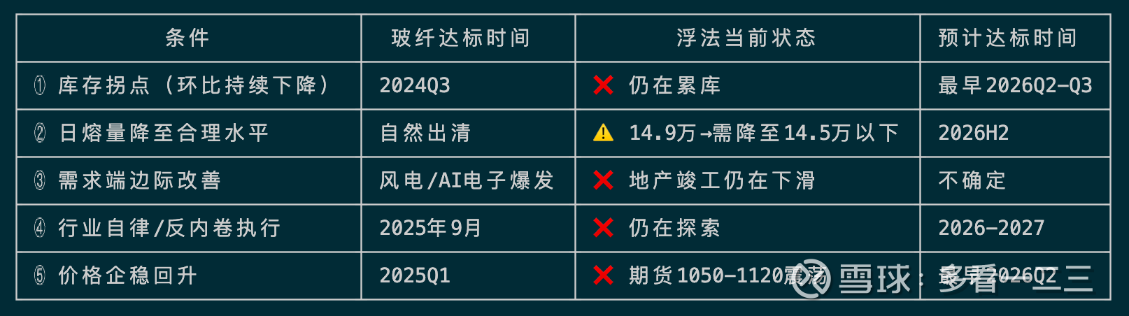3. 如果真想赌浮法反转,持仓周期至少要2-3年。参照玻纤经验,从"磨底"到"利润翻倍"需18-24个月,浮法由于集中度低,可能需要更久。短线博弈不适合。