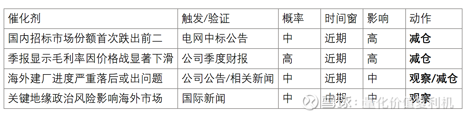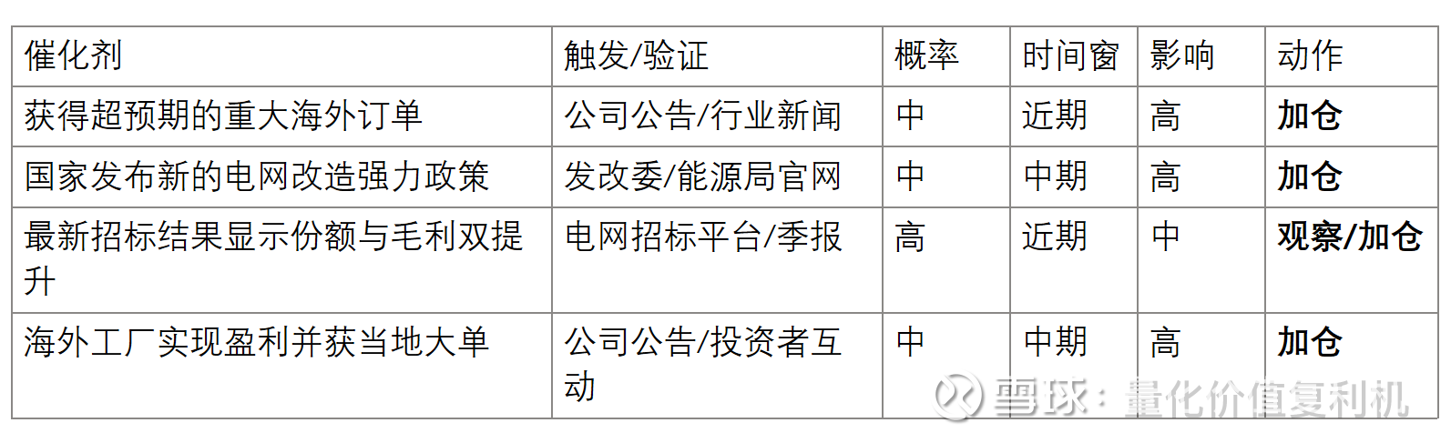观察清单: 紧盯 ①毛利率(若跌破35%则警惕)、②国网中标份额(若跌出前二则危险)、③海外业务收入增速(若放缓至20%以下则增长故事受损)。
