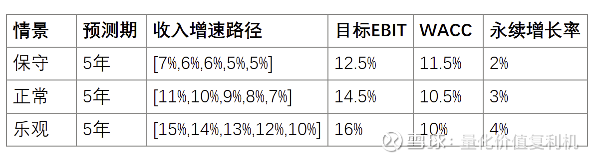 保守情景(30%概率):行业竞争加剧,原料成本波动,利润率承压,EBIT维持在12%左右