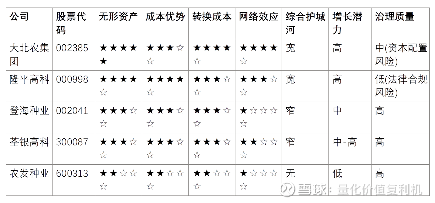 荃银高科凭借与国家关联的先正达合作关系展现强大增长潜力,其灵活性和执行力值得关注,但护城河相对较窄,更多建立在合作关系而非基础性IP上。