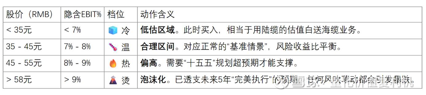 估值热度:烫手(>9% 隐含EBIT率)。当前约58元的股价,已经计入了“出海成功+铜价平稳+国内市占率提升”的完美预期。
