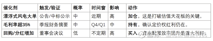 乐观(25%概率):“深海为王”。全球漂浮式风电爆发,亚星垄断高端市场,毛利突破35%,估值切换为“科技成长股”。