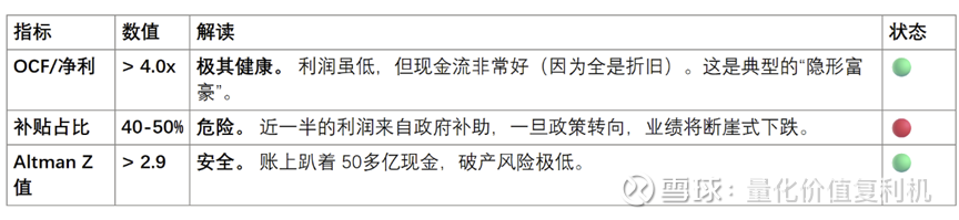 最大软肋: “补贴成瘾症”。核心净利润(扣除政府补助)微薄甚至亏损,全靠巨额折旧掩护下的现金流与国家输血维持表观盈利。